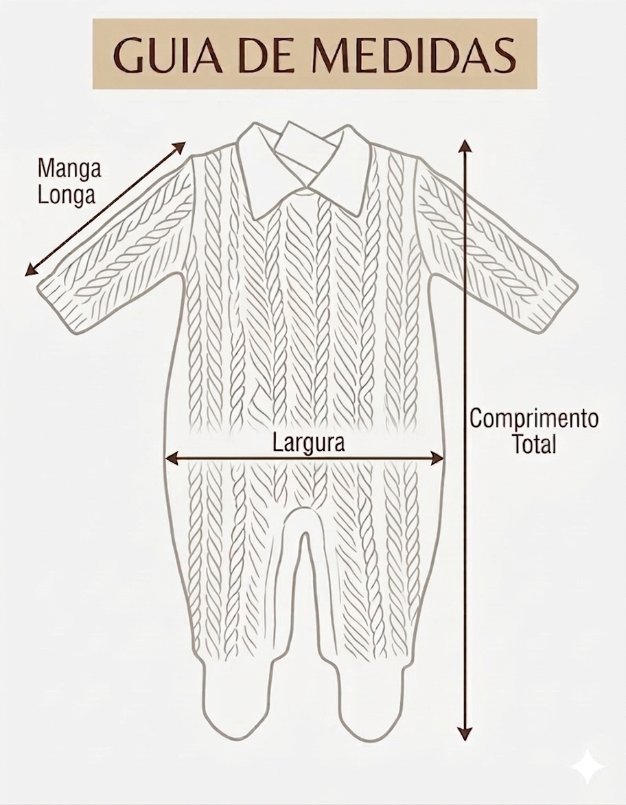 Macacão tricot maternidade, longo com pezinho nos tamanhos PP - RN - P e sem pezinho nos tamanhos M - G, manga longa raglan, abotoamento entrepernas e costas. O nosso diferencial são os diversos pontos, onde utilizamos o mesmo tipo de fio para diferentes texturas, sendo perfeito para qualquer época do ano e deixando um toque macio em cada peça.